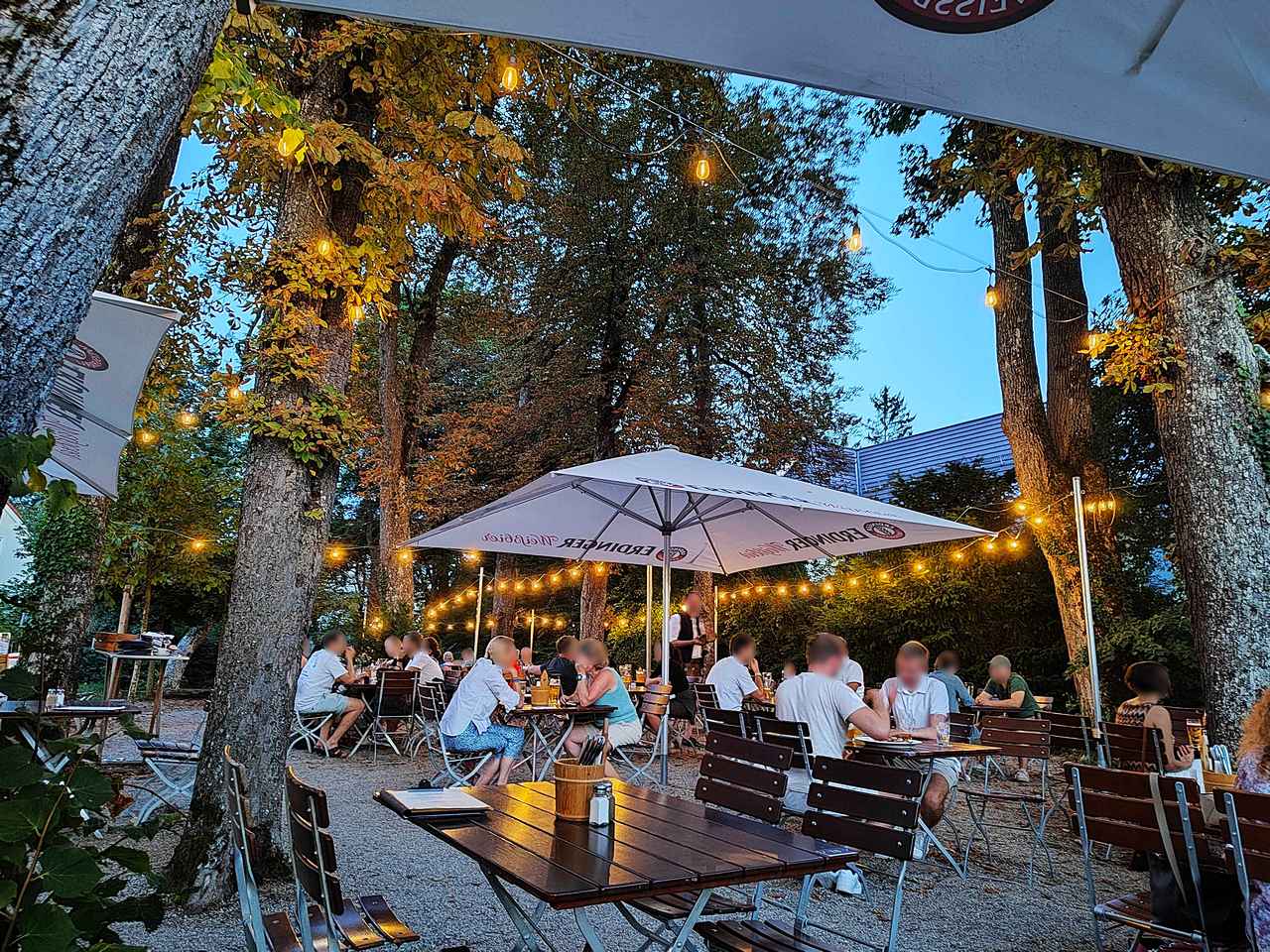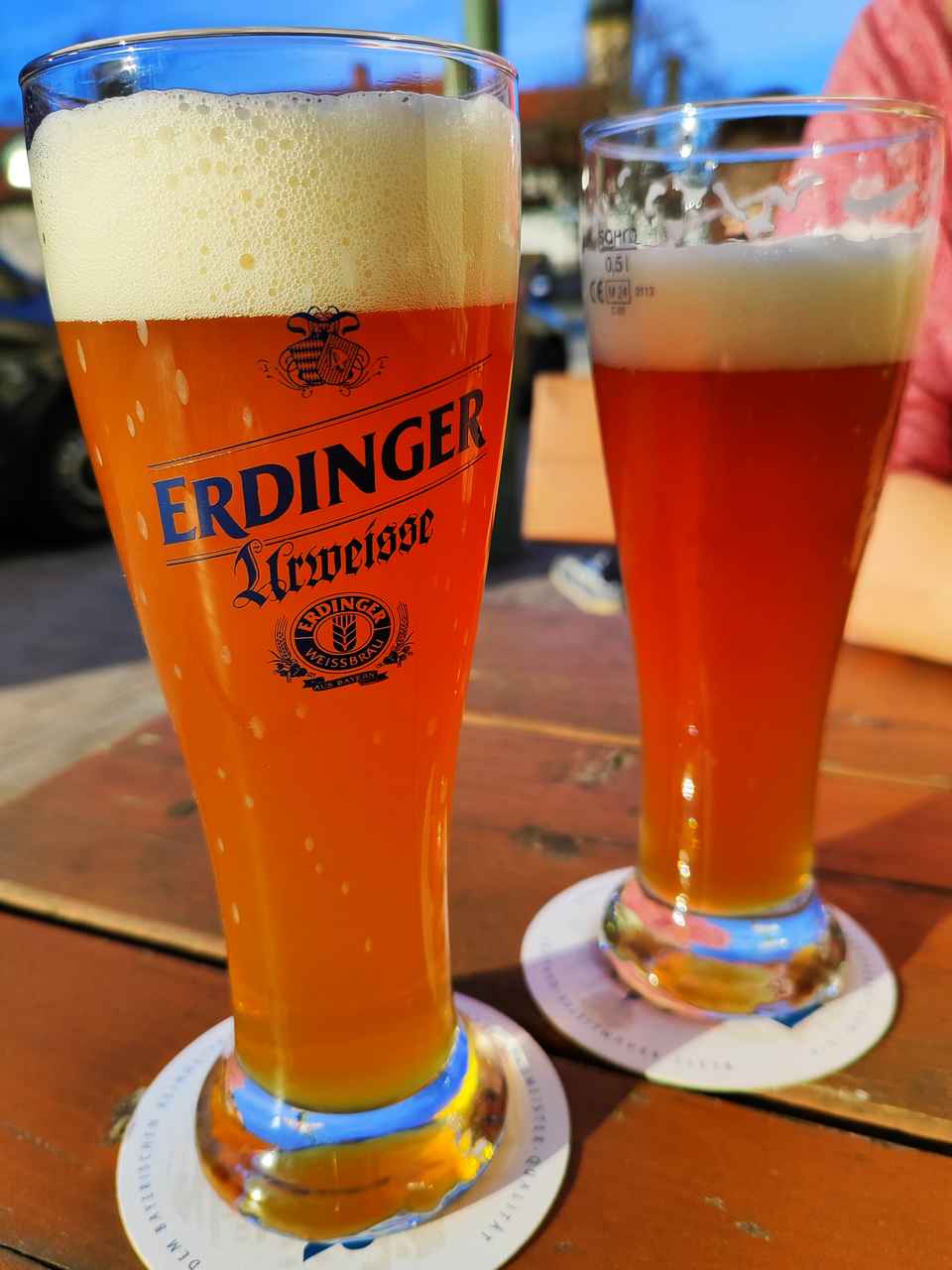 Wie der Name vermuten lässt, schenken sie im Biergarten Erdinger Weißbier aus. Das gefällt uns, da wir gerne ein erfrischendes Weißbier trinken. Wir haben das leckere Urweiße getrunken, das mit seiner goldenen Farbe schon vor dem ersten Schluck Freude macht.